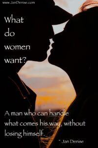 If you as a man have the courage to be you, regardless of the consequences, women will respect you. We won’t all like you (don’t personalize preferences), but some of us will. You’re giving us what we most want. Now we know: A woman wants a man who can handle what comes his way, including her, without losing himself.